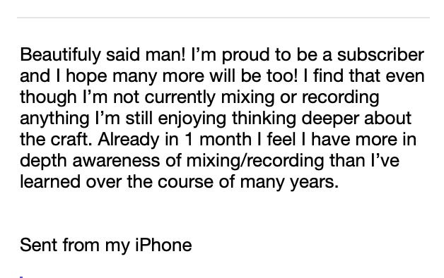 ps some of you have sent me some lovely comments apropos of my 1-month anniversary post! Thank you. 🖤 And there have been a bunch of new subscribers, and some new paid supporters — thank you all so much too. I wanted to share this one comment I got, because it touches on exactly why I started this list. This is from our dear friend Chetan Tierra — a fearsome classical pianist and co-owner, with his wife Melissa, of San Diego Piano Academy: